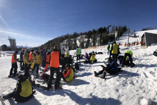 First-graders go on a ski training to Strbske pleso in High Tatras to learn to ski. They are divided to groups based on their level of skiing. They spend 5 days and 4 nights in a hotel and on slopes. After skiing lesson they rest and then play games to socialise.